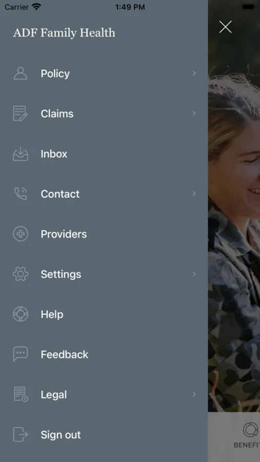 Download the ADF Family Health mobile app to access your account, view your details or submit claims on the go.
