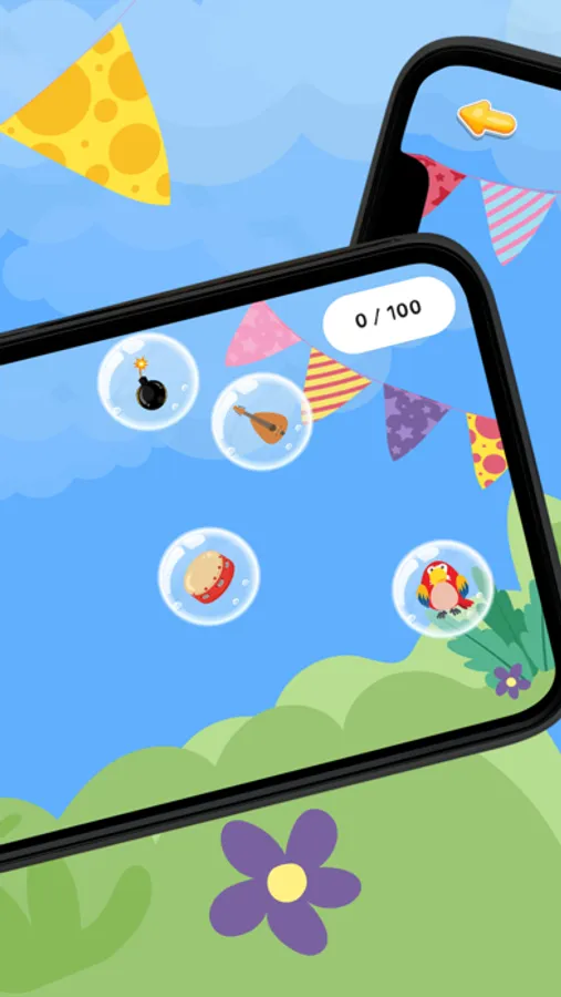 The bubbles contain different visuals of animals, musical instruments, toys, and much more! Be careful not to pop the bomb bubble or else you would lose the game!