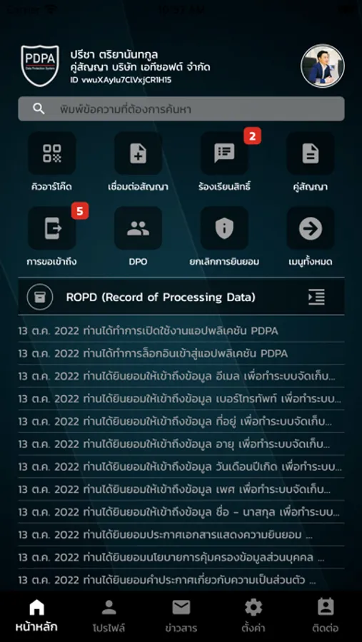 5) DATA Subject Request Forms / ระบบการขอตรวจสอบ การเข้าถึง การประมวลผลข้อมูลส่วนบุคคลใดๆ ของเจ้าของข้อมูล ผ่านระบบ App Aetas PDPA