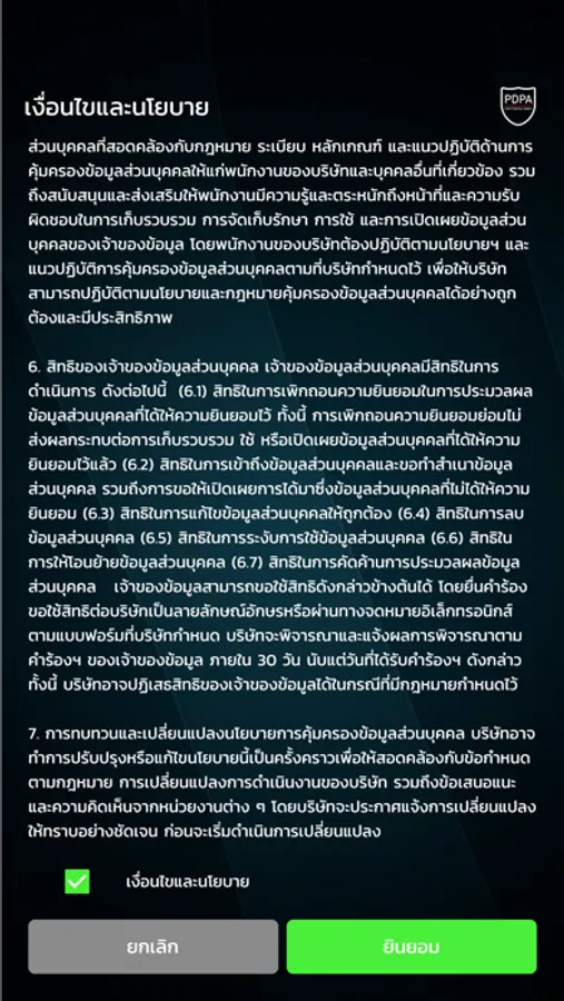 2) Privacy Policy / Privacy Notice ฟังก์ชันการบรอดนโยบายการเข้าถึงข้อมูลส่วนบุคคล ผ่านระบบ App Aetas PDPA ให้เข้าถึงพนักงาน ลูกค้า หรือผู้เยี่ยมชมองค์กร ผ่านทางโทรศัพท์มือถือ
