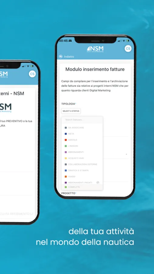 NSM is the official App of Nautic Sales & Marketing, an Italian nautical and naval products sales representative and distribution company, as well as a communication and social media marketing agency.
