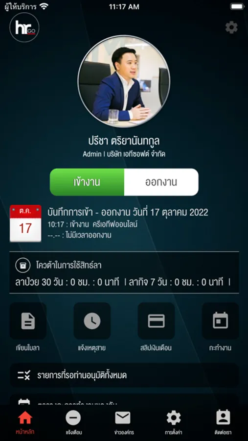 1) บันทึกเวลาเข้า - ออกงาน ด้วยระบบ App Online เต็มรูปแบบ สะดวก ปลอดภัย