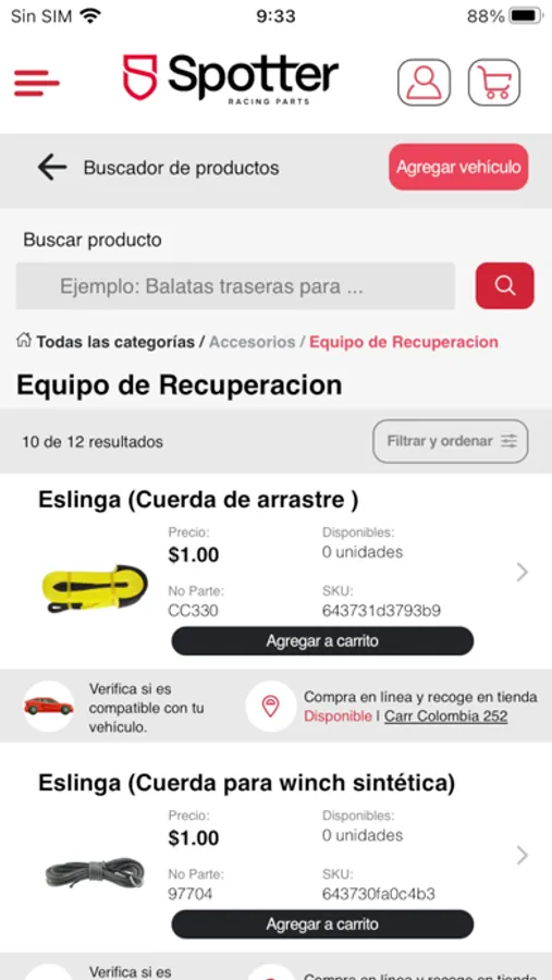 Nuestra aplicación sirve para que los clientes ubiquen los productos que les gustaría comprar en la tienda de Spotter Racinng Parts.