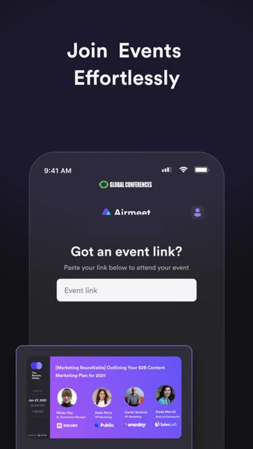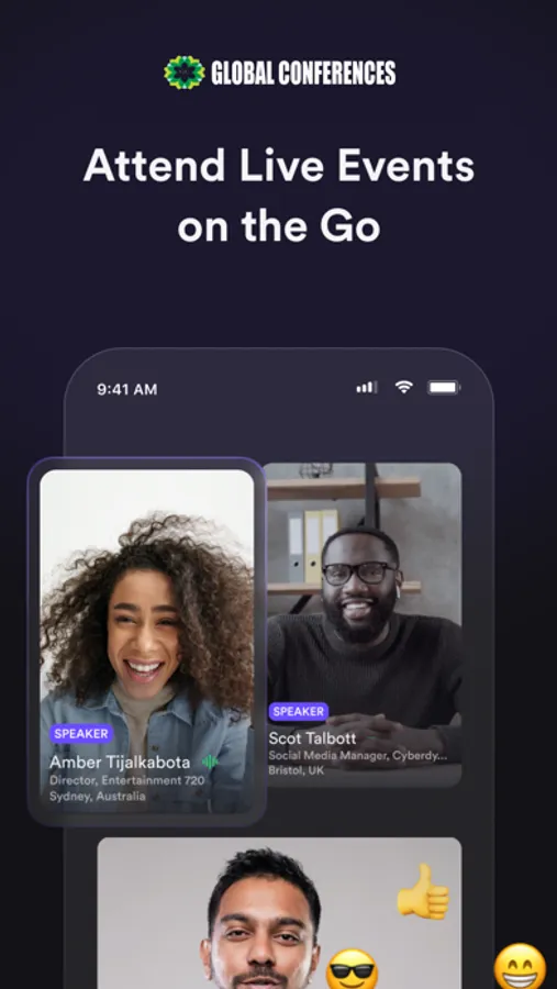 The Global Conference app gives you the ability to attend amazing virtual events on the go. Whether you’re at home, on a train, or in a cafe, you can join from anywhere, attend sessions and make new connections.