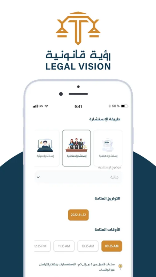 Under the umbrella of Al-Ojeel Law Firm under the commercial registration title (2050154477) and license from the Ministry of Justice No. (36/261), and membership of the Saudi Lawyers Authority No. (288516) from the Communications and Information Technology Commission