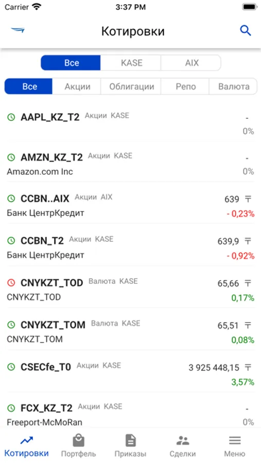 Приложение предназначено для клиентов АО «Казпочта», заключивших договор на брокерское обслуживание. Программа позволяет просматривать в режиме реального времени котировки ценных бумаг, а также состояние портфеля клиента.