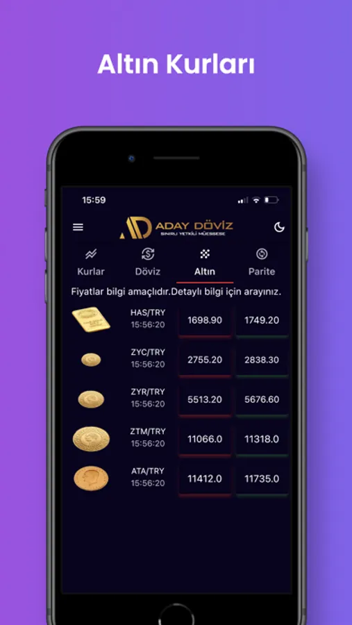 Döviz ve Altın kurlarını anlık takip edebilir,çeviri özelliği ile hesaplama yapabilirsiniz