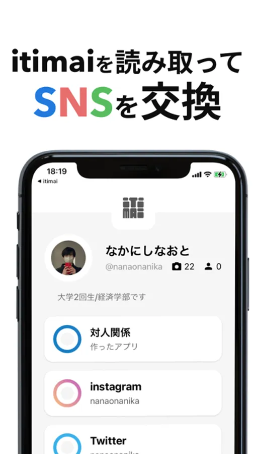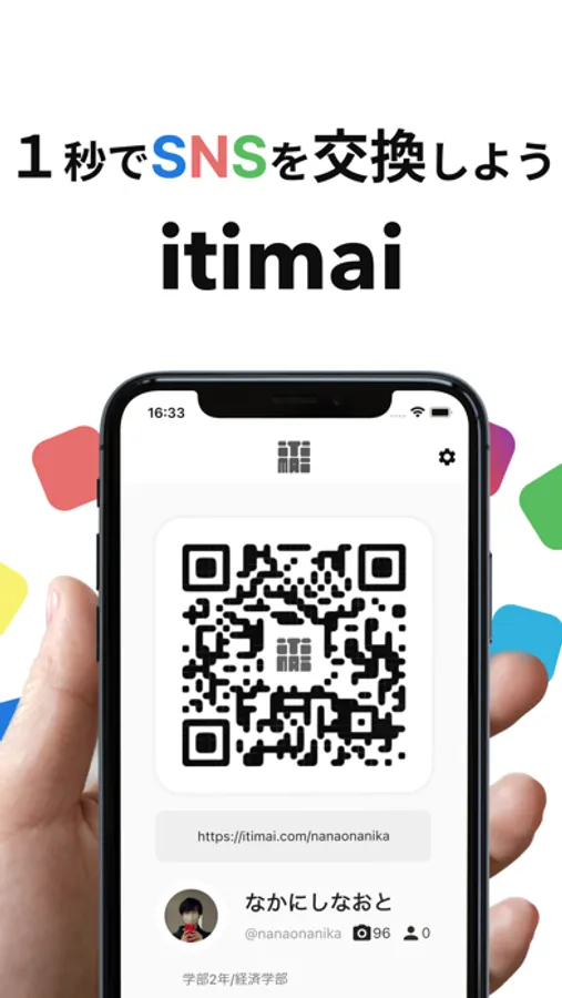 itimai(いちまい)を使うことで、たった1枚のQRコードで複数のSNSを交換できます。