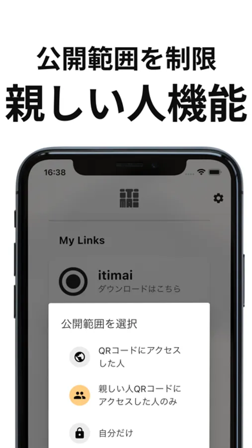 アプリウィジェットを使ってホーム画面にitimaiのQRコードを追加できます。