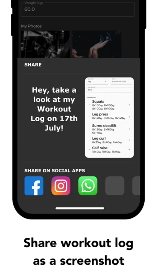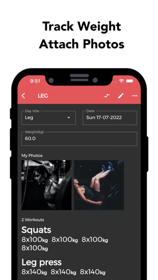 * Calendar with monthly-view - View all you workout logs in a calendar view. This shows your weight, total workouts done and title of the day.