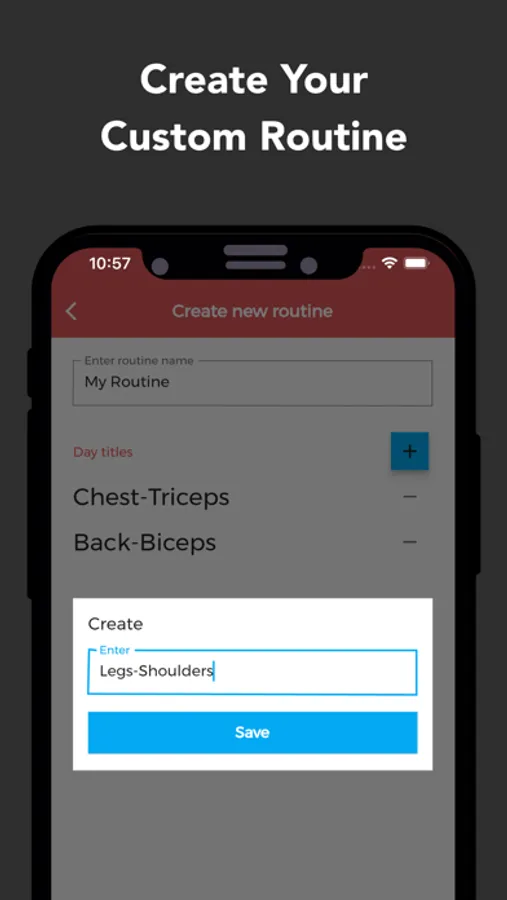 * Routines/Splits - Choose from or make your own routine or split which you follow. Create new by adding day titles easily.