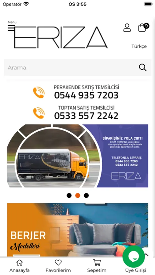 Erizahome.com mobil e-ticaret uygulaması ile anında;