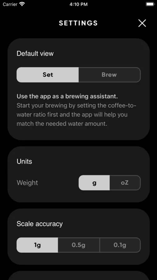 The GINA brewing app is an integral part of the GINA Smart Coffee brewer. The app connects to the integrated scale in your GINA brewer and enables you to track the weight and time, which are core tools for brewing a great cup of pour over or immersion coffee. The app helps you determine the perfect coffee to water ratio with the useful ratio calculator. With seamless Bluetooth connection and epic scale accuracy and a hands free start of your brew timer, this app will level up your coffee brewing.
