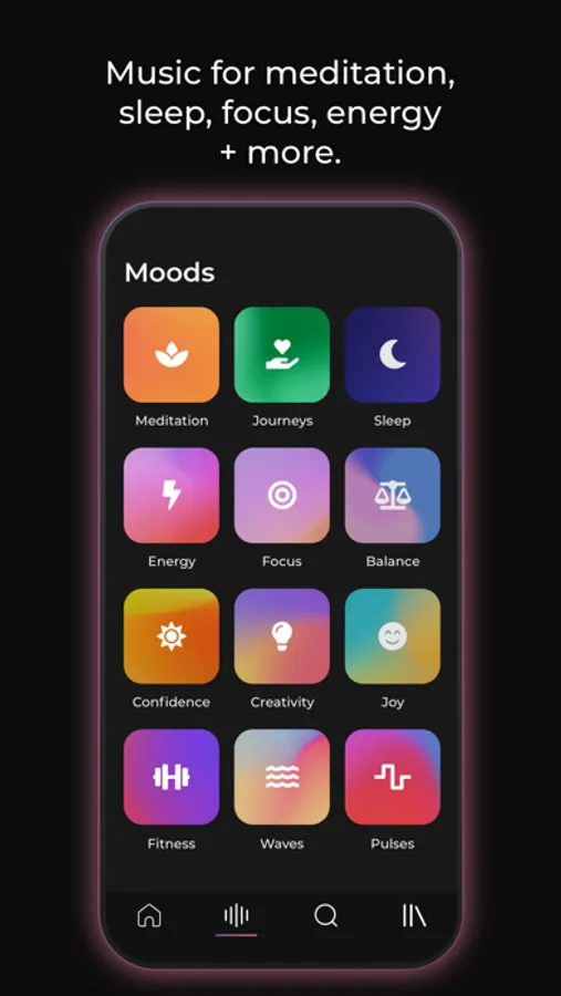 - Meditation, sleep, energy, joy, focus, confidence, balance, motivation, learning, memory, positivity, creativity, fitness, yoga + more.
