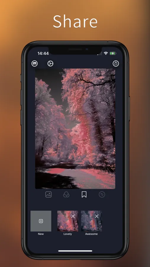 In the app you can edit existing filters, as well as create and save your own! Just make all the necessary changes to the photo and click - "Add filter". That's it! Now. you will be able to apply this filter immediately to your other photos.