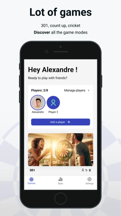 The Home Darts Club application allows you to easily play darts by providing a simple and accessible scoring method. No more need to focus on mental calculation, we count for you, and you can focus on the fun of your game! You can play alone or with your friends up to 8 players (depending of the game), at home or outside. We hope to make you benefits of an easy darts experience for both beginners and high level players.