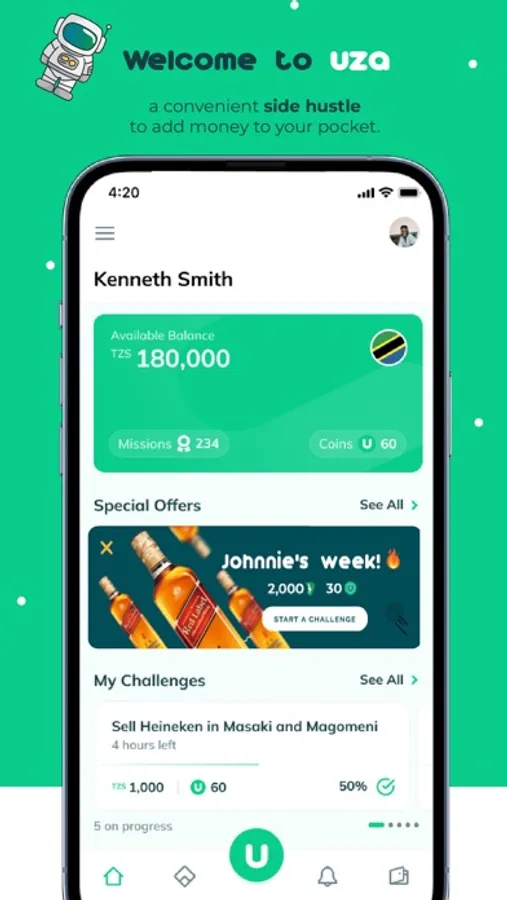 Become an entrepreneur with UZA, and get coins and points that can be converted into real money.