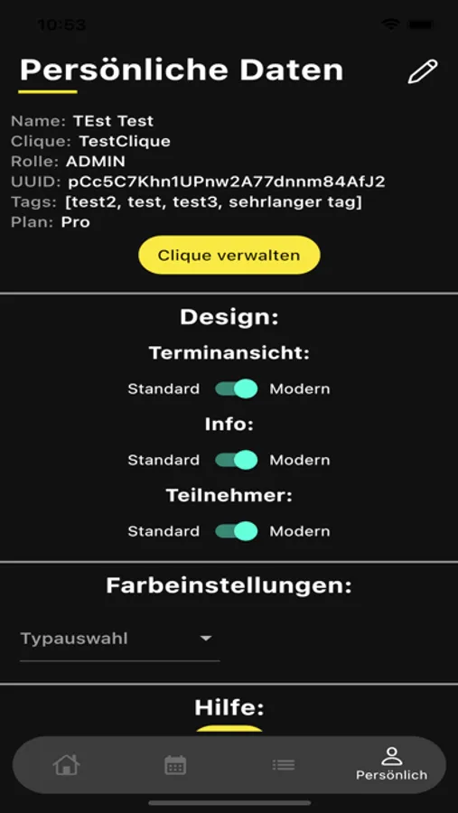 Ansicht einer Kalender von Terminen für eine Gruppe