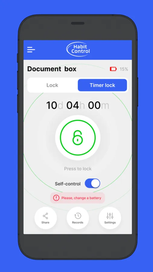 Lock different stuff from your kids, colleagues, or even yourself with our furniture lock. Set a timer with a self-control function and even you will not be able to open it for some period of time. Share access to your colleagues at the office to open your document box. Lock snacks, tablets, games, and medicine from your kids. It’s an app for multifunctional lock devices which were created to help people with their habits.