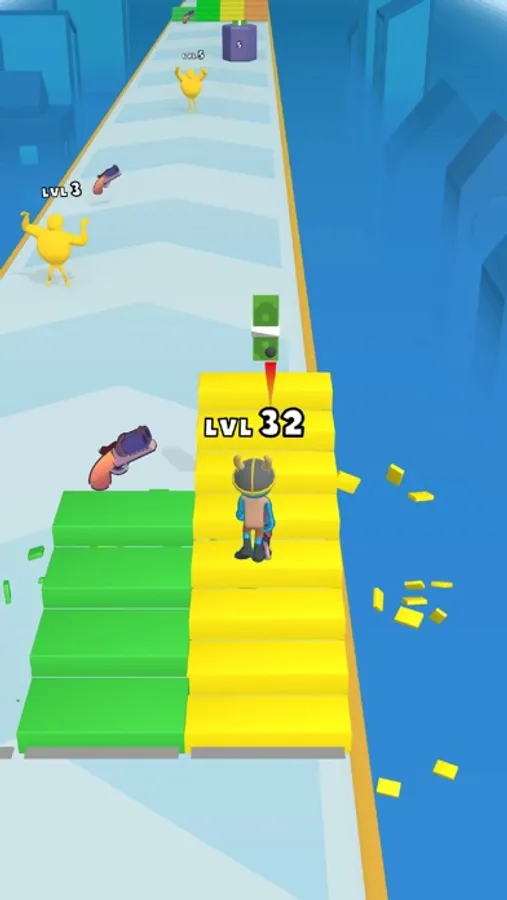 Collect the weapons. Kill the enemies. Smash the stairs. If you fall from the ladder, you may die.