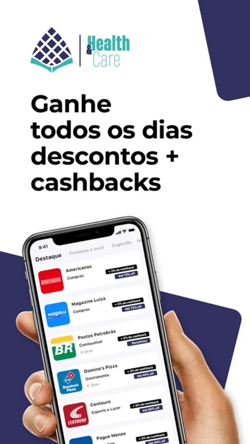 O Health&Care Benefícios surgiu do nosso compromisso em entregar as melhores experiências aos nossos clientes, agregando descontos, benefícios e cashbacks em todas as suas compras pelo aplicativo.