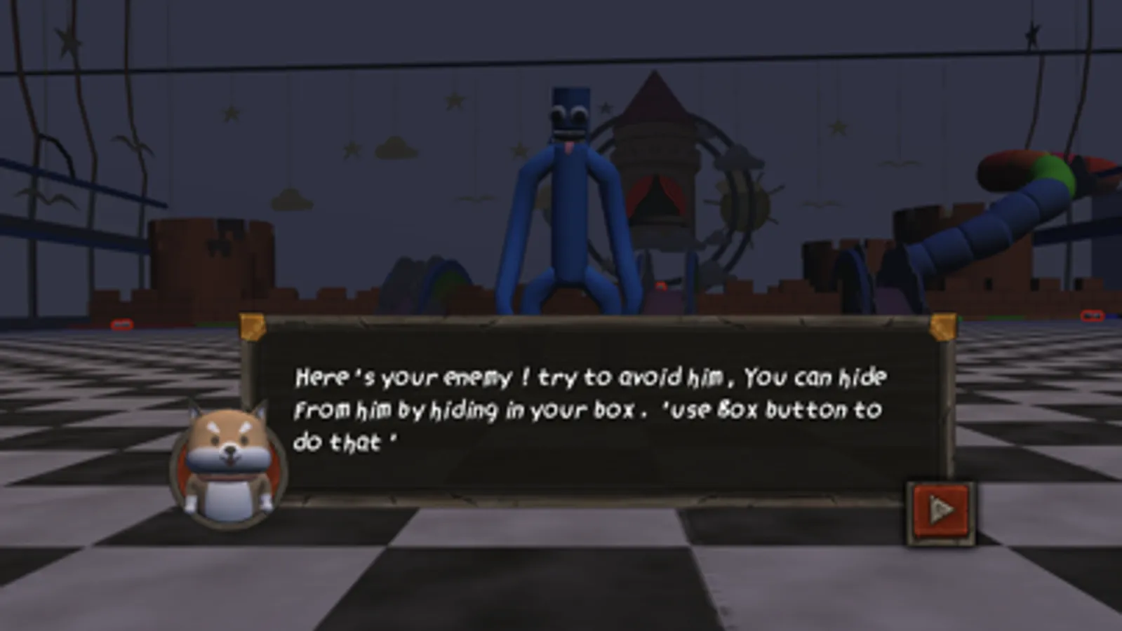 You gonna play with small ninja dog who try to be a ninja msater, vs the scary blue monster who try to beat you, you have a special weapons try to discover them by yourself !