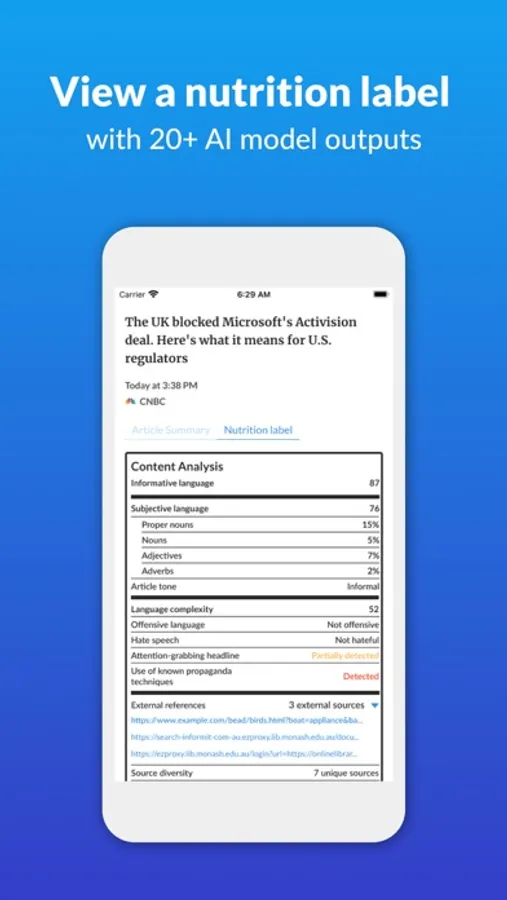 Our food comes with nutrition labels. Shouldn’t our news have them too? Well, now it does. Every article comes with a detailed nutrition label that helps you decide whether something is worth consuming -- before you consume it.