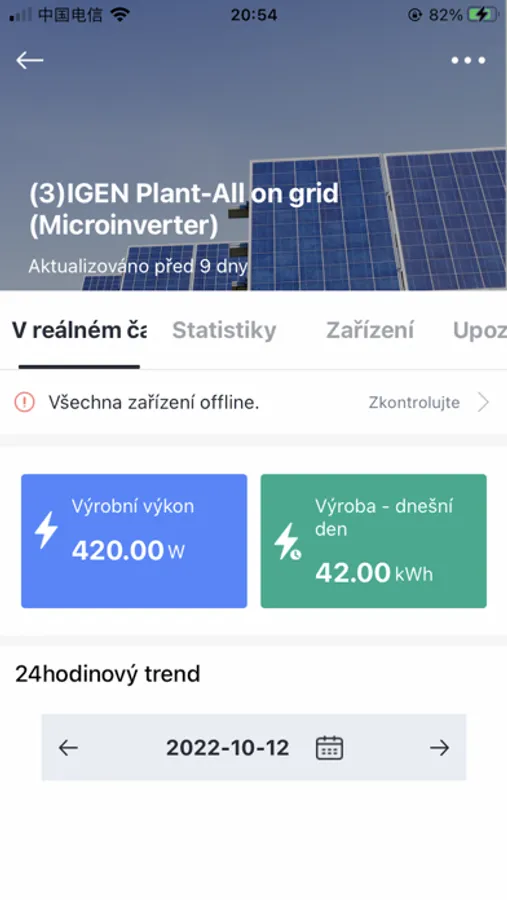 Aplikace Malina Monitor sleduje aktuální stav fotovoltaické elektrárny v kteroukoliv hodinu a z jakéhokoliv místa. Všechny sledované údaje a data vidíte graficky a přehledně v aplikaci - výkon, spotřebu, úsporu, stav baterií, připojení k síti, aktuální data i historii elektrárny apod.