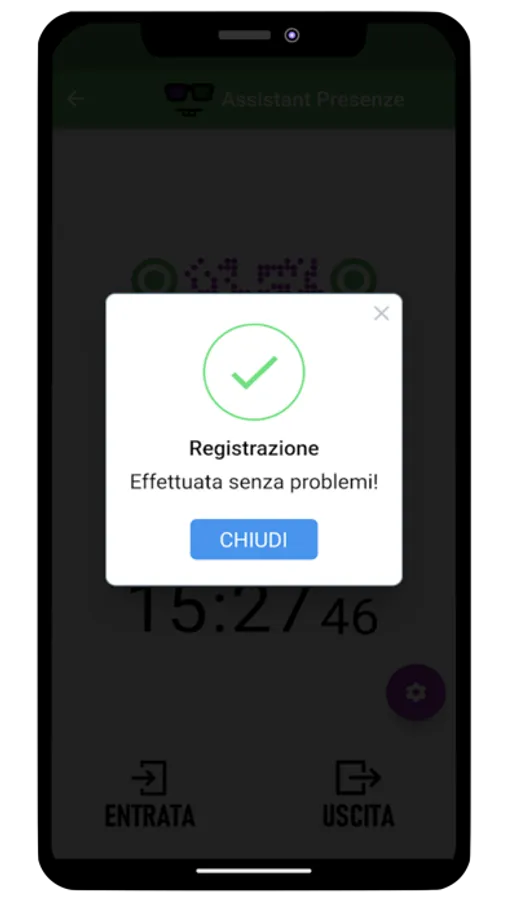 Installazione In Sede - va installata in un device ed ha la funzione di scansionare il QRCode personale per timbrare entrata ed uscita.