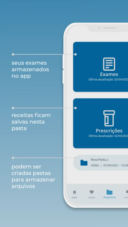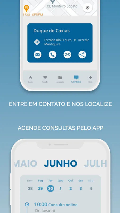 Agora você pode agendar consultas, ter receitas e exames sempre disponíveis no seu celular e receber lembretes de medicações e consultas através do nosso aplicativo.
