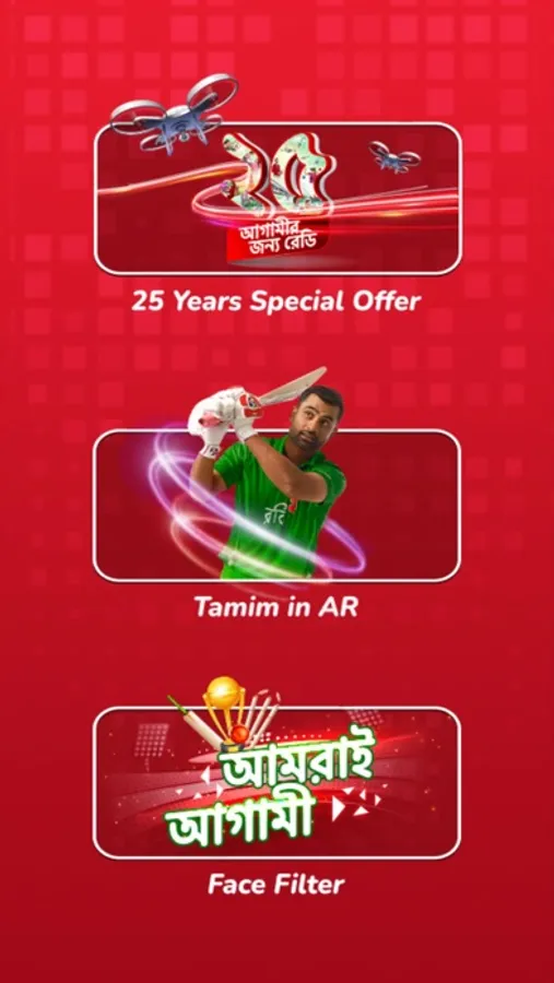 Robi AR is an innovative app with the objective to bring exciting, engaging contents for you. With a special message from one of Robi’s brand ambassador Tamim Iqbal Khan himself, this app provides an opportunity to purchase a product, try out awesome filters and stand a chance to win a miniature bat signed by Tamim! Wait no further, download the app now.