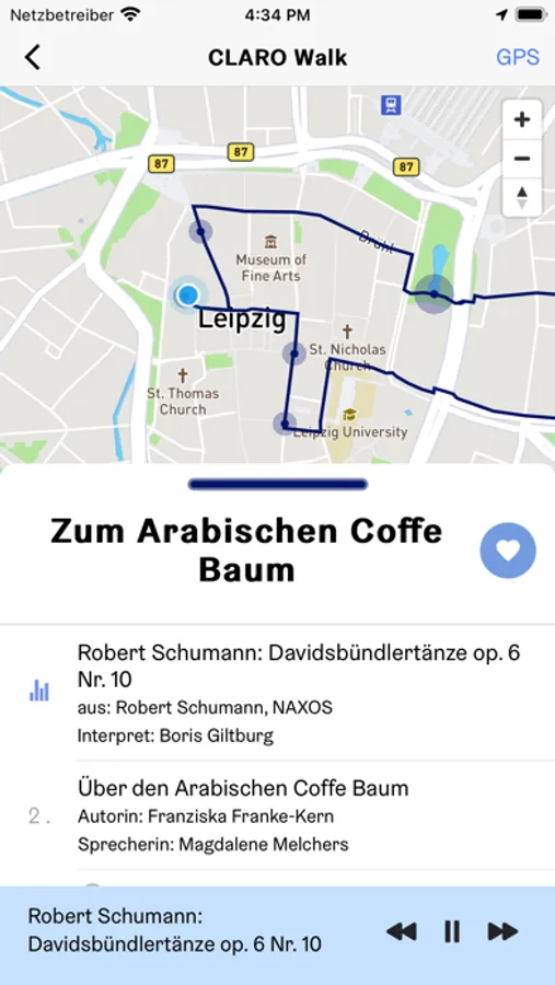Immerse yourself in the sound of Leipzig as a city of music! Numerous musical walks await you in the Notenspuren app. Places, some of which no longer exist in their original form, are brought to life through a cloud of sound - with music and words.