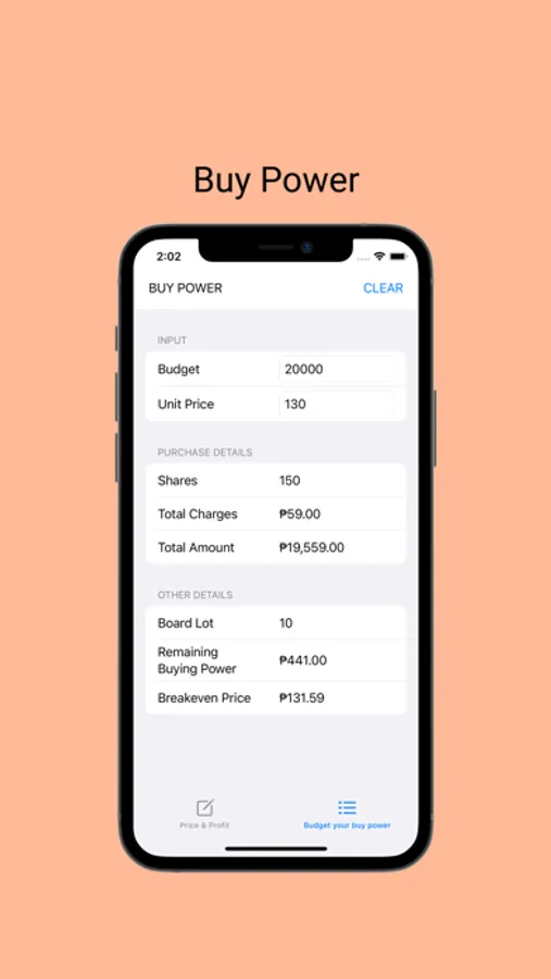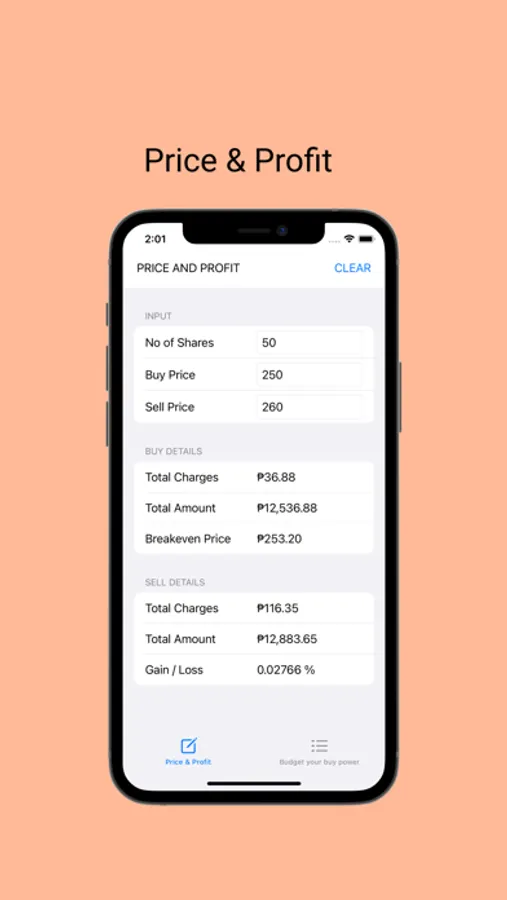 Easy to use app to calculate your target profit and know how many shares you can buy with your money.