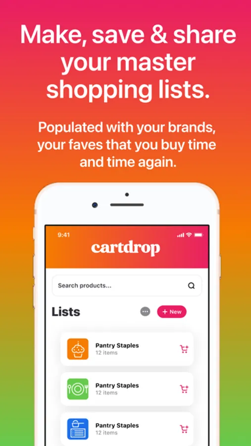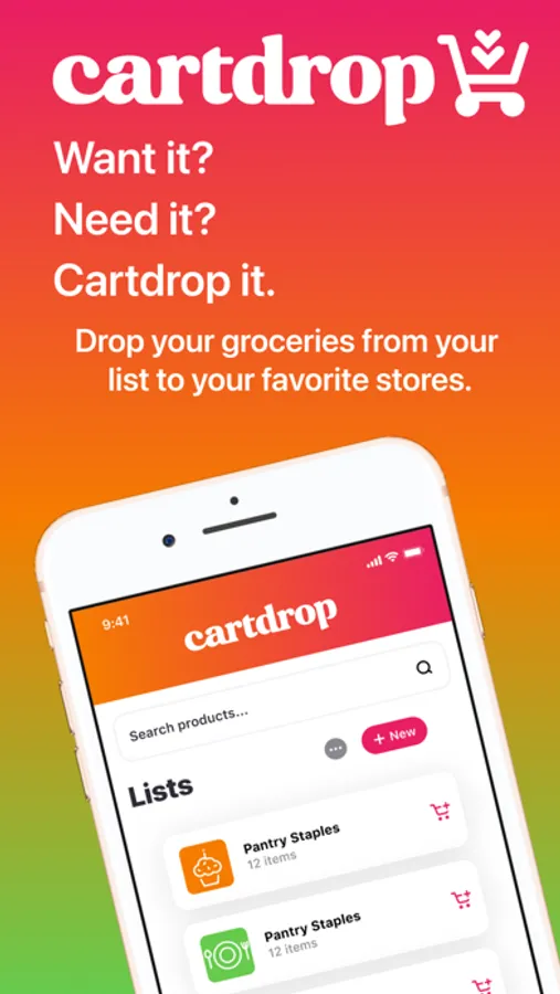 Say hello to Cartdrop, the shoppable list app designed to take the stress out of online grocery shopping. Make, share and save your lists as you move through the world. When it’s time to buy, we seamlessly match items in your cart with the best stores for delivery or pickup.