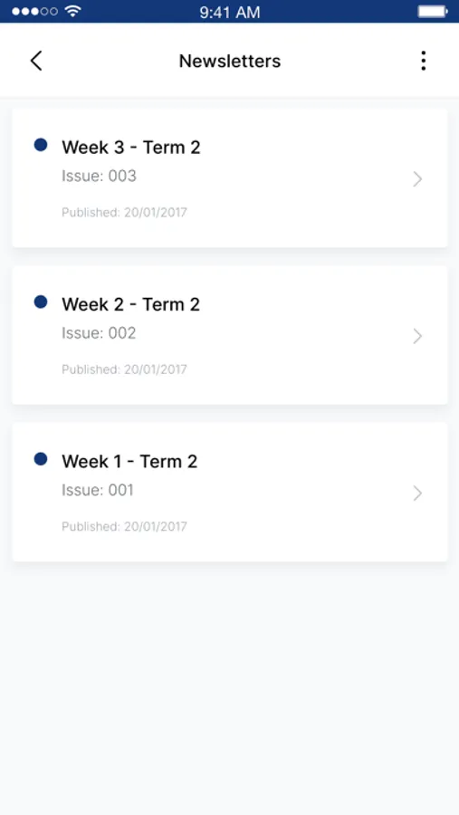 Newsletter: the Newsletter module allows Maitland Lutheran School to share electronic newsletters, directly to the app