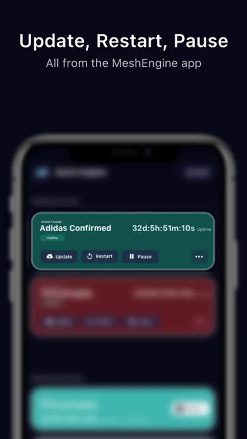 MeshEngine is a websocket based app to control websocket-based python programs, the app allows you to remotely send restart, update, pause commands without having to observe the server the python script is running on.