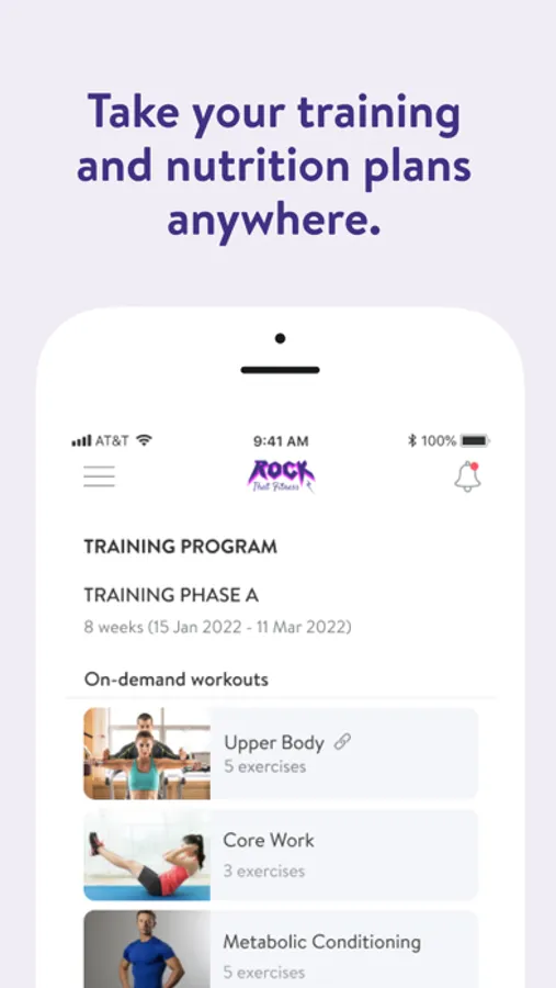 With the Rock That Fitness App, you will have access to Strength Training programs designed specifically to help you get stronger, leaner & help you reach your fitness and health goals! You can follow & track your training, your nutrition, your lifestyle habits, measurements and results–all with the help of your Rock That Fitness Coach.