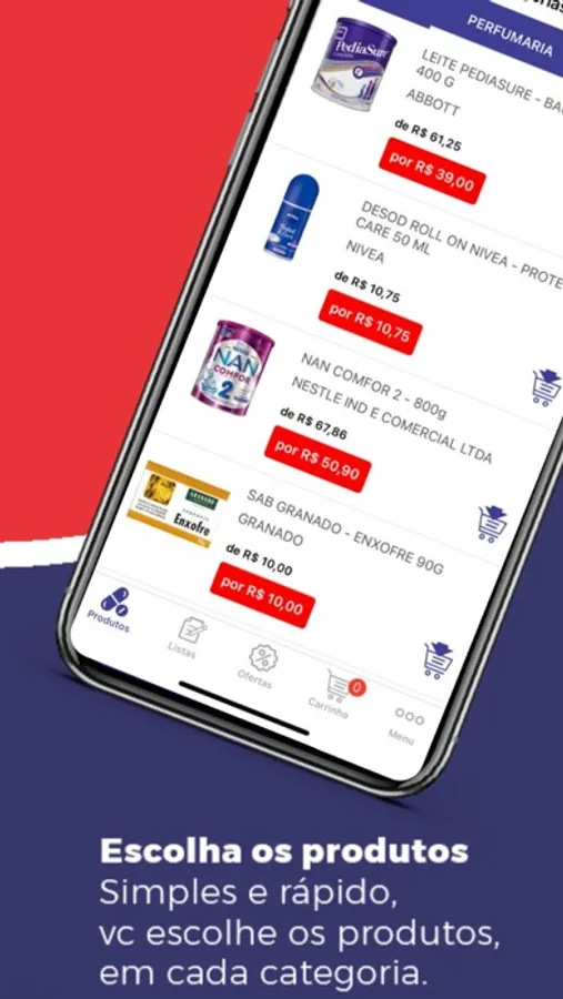 Baixe agora mesmo nosso App, faça o cadastro, escolha seus produtos e receba tudo de forma rápida sem sair de casa.