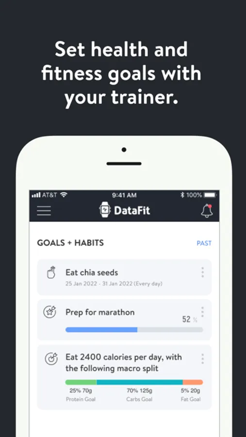 With the DataFit App, you will have access to workout programs designed specifically to help you reach your fitness and health goals! You can follow & track your workouts, your nutrition, your lifestyle habits, measurements and results–all with the help of your coach.