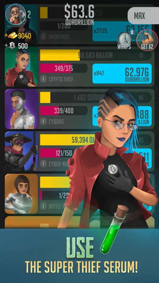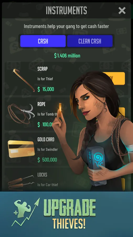 Ever dreamed of owning incredible team earning big money for you? Becoming a capitalist tycoon and just a Big Boss? Then Idle Thieves is the idle clicker for you!