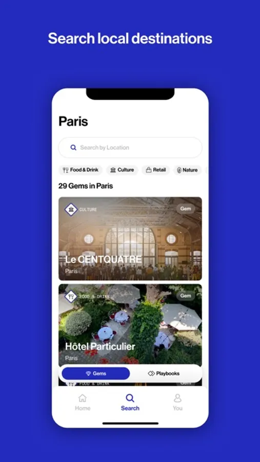 • Search Gems across Food & Drink, Arts & Culture, Events, Nature, Retail, Accommodation, Wellness, and more