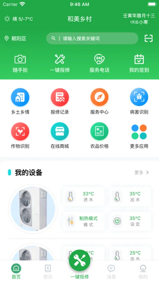 和美乡村是服务于广大农村地区的一个综合性服务平台,主要功能包括:农村地区供暖设备的实时监控,一键报修。农村地区的新闻资讯,政策法规,以及村务处理,消息推送等功能;通过该移动应用,极大方便了广大村民群众的日常生活,提高了办事效率,生活品质等。