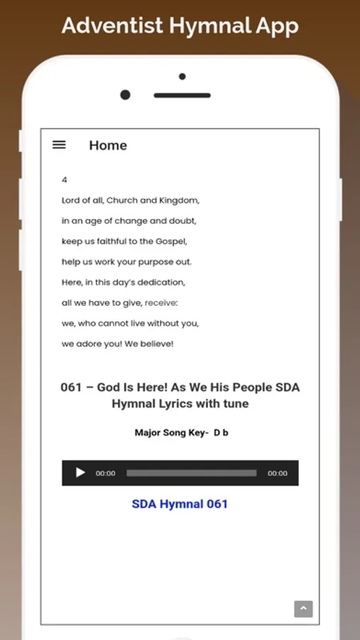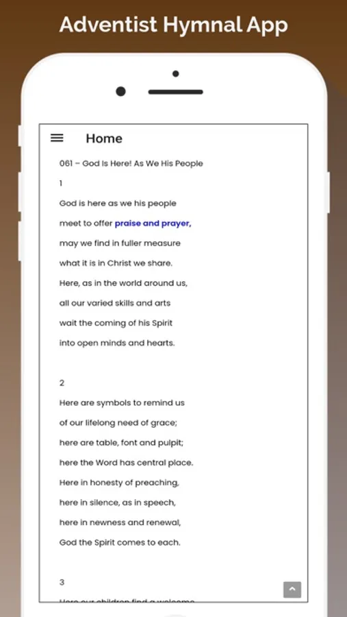 Download it right now and get access to the best and most complete Seventh-day Adventist hymns app.
