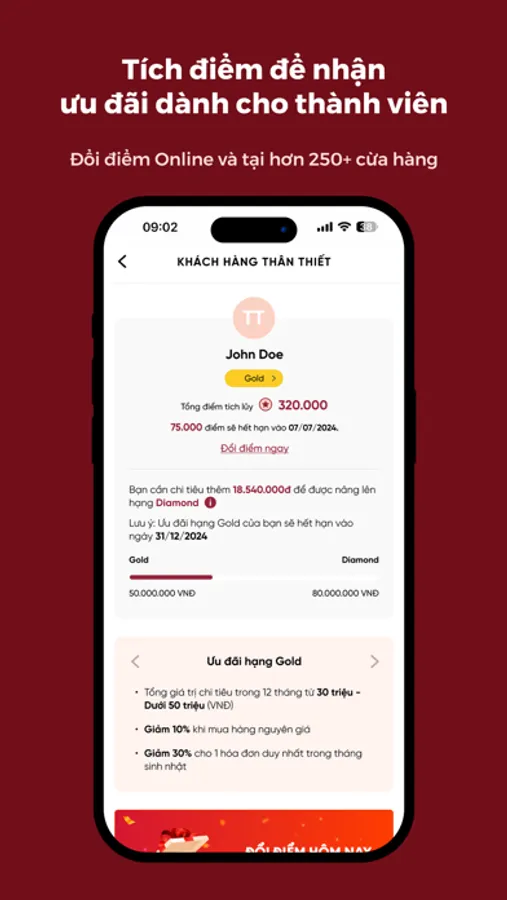 - Tích điểm đổi ưu đãi dành riêng cho Khách Hàng Thân Thiết của ACFC.