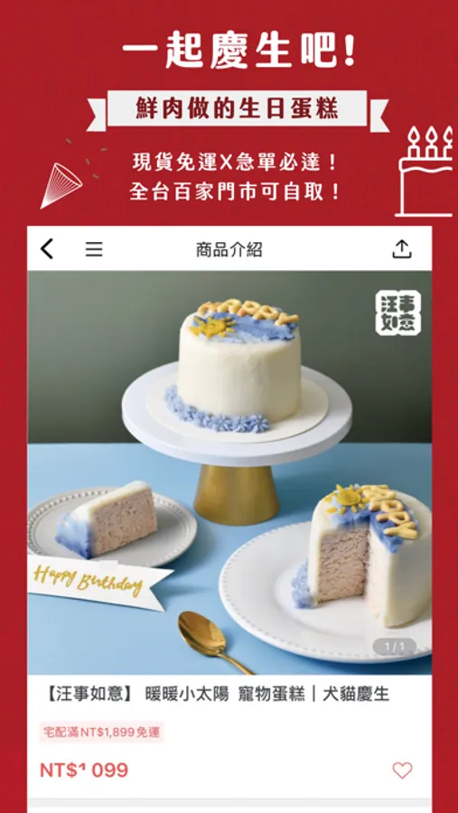 【汪事如意五星寵物鮮食】耗資千萬打造毛孩專屬產線,提供天然鮮食、原肉零食、生日蛋糕等食品,愛他就該讓他吃得跟你一樣好。APP不定時推出會員限定優惠,立即下載不漏接。