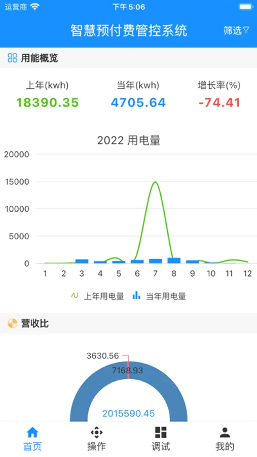 *首页查看用能概览,营收比,仪表概况,仪表状态,告警信息