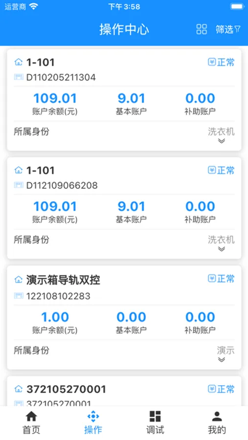 *操作中心能查看房间,表具,账户的状态,并对表具读写及充值