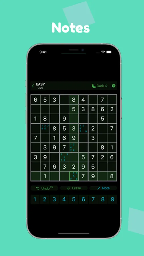 - Ability to note down numbers: Not sure which number goes where? Use Note Mode to jot down possible candidates for each cell.