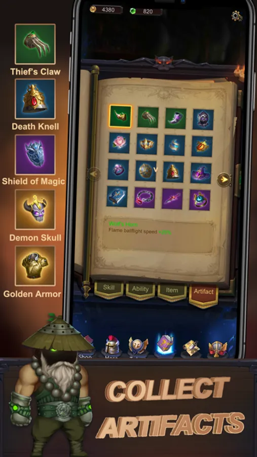 • Over 20 artifacts offering different buffs to skills, like reducing cooldown, increasing damage, and expanding damage range. The collocation of skills and artifacts is essential for how long you can survive.
