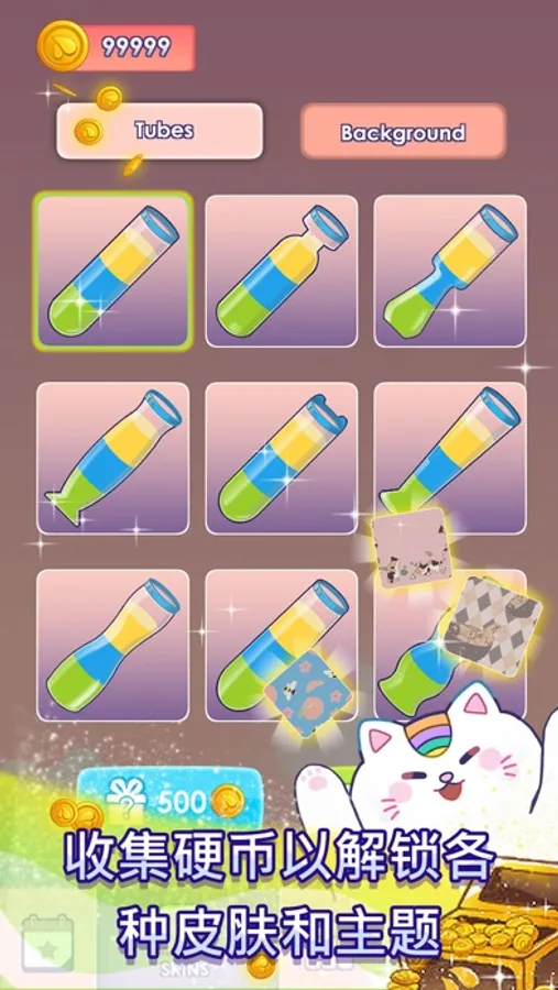 这个色彩缤纷的游戏看起来很简单,但也很有挑战性。你达到的水平越高,它就越难,因为有更多的管子来排列颜色。